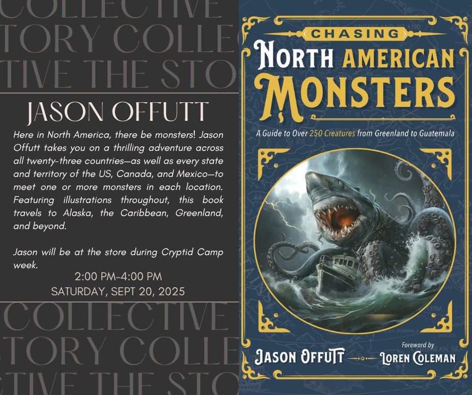 We are excited to welcome back local author Jason Offutt. Jason will share about his latest book: CHASING NORTH AMERICAN MONSTERS. This event is in conjunction with Cryptid Camp - visit their event page for more fun events during the week of September 15-21. Jason Offutt grew up on a farm near the little town […]